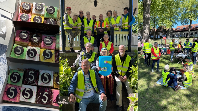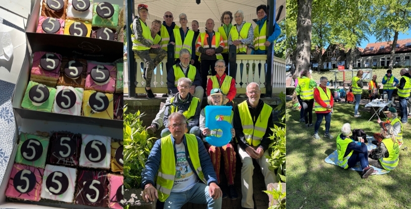 Ons 5-jarig bestaan hebben we gevierd met een gezamenlijke opruimactie in Middelharnis. Na afloop werden de vrijwilligers verrast met een petitfour gebakje met het cijfer 5 – een klein, maar smakelijk symbool voor een grote prestatie. De dag werd afgesloten met een groepsfoto als blijvende herinnering.
