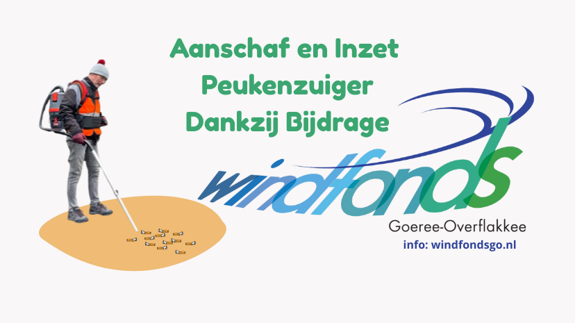 De aanschaf van deze peukenzuiger is mede mogelijk gemaakt dankzij een financiële bijdrage van Stichting Windfonds Goeree-Overflakkee. Wij zijn het Windfonds zeer dankbaar voor deze steun. Info op: www.windfonds.nl.
